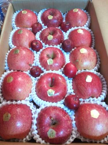 先日、東北に住んでいる友達が、リンゴをたくさん送ってくれました。サンふじです。切ってみると、真ん中に蜜がたっぷり。カリッと歯ごたえがあり、甘味と酸味のバランスがよくて、味が濃い。とってもジューシーな美味しいリンゴです。 小さいリンゴもかわいい。これはショリショリして美味しかった♪毎晩、夕食後に食べています。かえでは、小6の頃から偏食が減ってきて、今は、ほんとにいろんなものを食べれるようになったけど、果物は、あんまり好きではなく・・それでも、リンゴと梨は食べてくれます^^こんな歯ごたえのある硬いリンゴが気に入っているようで、よく食べてくれて、うれしい♪ 昨夜のこと。夕食後の片付けが終わって、リンゴを切って、いつものようにテーブルに出すと、すぐにかえでが来ました。(って、動物みたい(笑))おじいちゃんが、自室に行ってしまったので、小さなお皿にリンゴを入れて、「これ、じーじに持ってってくれる?」と、かえでにお皿を渡しました。何か頼んだ時、それが理解できて、ちゃんと行動できるか・・いつも、どうするだろう?と、かえでの動きを見守っています(^_^;)お皿を渡されて、どうしていいのかわからない様子だったので、「じーじに、これどうぞ・・って、渡してきてくれる?」 すると、『よしわかった!』みたいな顔になって、サッと出て行ったので、おお~~!すごいじゃん^^ちゃんとわかってるじゃん^^と思いながら、どんなふうに渡すかな?と、そーっとあとをつけてみると、おじいちゃんに渡さず・・なんと!仏壇に供えていたあ~~~~\(◎o◎)/!おじいちゃん、「オレはそっちじゃないわい。まだ生きてるぞ!」 ほんとほんと。まだ仏壇には早いよ~~爆笑な出来事でした(≧∇≦)