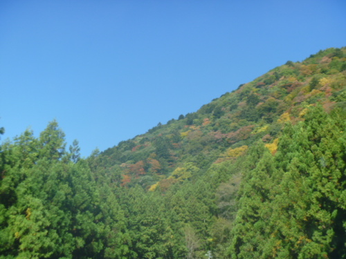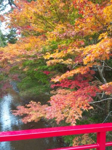 今日は晴れているのに、夫はお仕事を休むそうで・・てか、仕事が暇になっているらしく、先日から私が「紅葉狩りに行きたい」と言っていたので、近場の見ごろな所に行くか~・・ってことになりました^^寸又峡という、一応、日本の秘境100選にも入っている、大井川の奥の方へ行きます。車で2時間くらい。なんか、今日はお天気はいいけど、めちゃ寒い。真冬の重装備です。奥に行くにつれ、山がだんだんと色鮮やかになってきて、ああ、写真だときれいに色が出ませんねえ(^_^;)車のすれ違いがこわいような細い道を通って、やっと寸又峡温泉入口に到着。おお、赤がまぶしい!これは景観を期待できそう\(^o^)/と思ったけど、その秘境は、大して紅葉はきれいでもなく、普通の山って感じでした(^_^;)さすがに、京都嵐山のような紅葉は期待してなかったですが、もうちょい、『赤や黄色の色さまざまに~~♪』をイメージしていたので、ちょっとガッカリ~~(;´Д`)ノもみじやかえでなんて、あんまりなかったかも。ここは、遊歩道が整備されていて、「夢の吊り橋」を渡ったり・・てか、メチャクチャ寒いし冷たい!!この橋がまた怖いのよ(笑)定員10名らしく、紅葉シーズンは混み合うので、一方通行らしい。面白そう♪と思って、渡り始めたはいいけど、真ん中に近づくにつれて、揺れる揺れる・・・(||゚Д゚)ヒィィィ!怖くて、めまいがするような感じもして、途中から足がすくんできてしまった・・スリル満点((+_+))渡り終わると、まだユラユラしてるみたいでした。一方通行で引き返せないので、ここから上の道に登る階段があるんだけど、300数段あって、すごい急勾配。登りきったら、ヘトヘト。別の橋の上からは、秋らしい風景が見られました。期待したほどの景色は見れなかったけど、きれいな空気を吸って、ちょっとリフレッシュ。でも、マジで疲れました(^_^;)来年は、もっと本格的な紅葉狩りに行ってみたいなあ~~なんか、動けるうちに・・って、最近は切実に感じます 帰り道、大井川鉄道の千頭駅で、SLが停まっているのを発見!これもいつか乗ってみたい♪