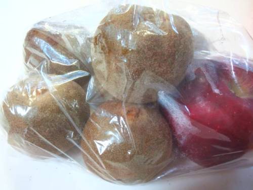 ここ2~3日、大変ありがたいことに、野菜や果物のいただき物がたくさんですまずは、キウイフルーツ。近くにキウイ農園はありますが、自宅でキウイを栽培している人も多いんです。これは、先日パンをあげた友達からいただきました(^_^;)まだ採りたてなので、すぐに食べられず、リンゴと一緒に袋に入れておいて、リンゴから出るエチレンガス?で、キウイが熟すのを待っているところです^^早く食べたいなあ( ̄¬ ̄*) 今日は、整体に行きました。終わって帰る時に、整体の先生が柿をくださいました(^_^;)ご夫婦ふたりでは、食べきれないので・・と。次郎柿ですね。かたいのが好きな人、やわらかいのが好きな人、お好みで・・って感じです^^(私は中間くらいが好き)柿ってビタミンがすごく多いらしいです。でも夜に食べると冷えるので、お昼に食べるのがよさそう。二日酔いにも効くんだって~(≧∇≦) そして、みかん!おじいちゃんが、肥料屋さんの従業員の人からいただいたそうで。大きさが不揃いで、お肌もきれいではないけど、すごく甘いんですぅ♪ そんでもって、今日はかえでが芋掘りに出掛け・・・なんか、芋掘りっていうと、4年前の現場実習を思い出すなあ・・懐かしい。でも一緒に、切なかったことも思い出しちゃう(゚ーÅ)サツマイモは、通所施設の近くにある農園で掘らせてもらったそうです。そこでは、いちじくやリンゴなども作っていて、一個だけリンゴももらってきました。ここらでもリンゴが作れるってビックリ!さらに今日は、施設の保護者の方から、坊っちゃんカボチャをいただきまして・・今日はこれをくり抜いて器にして、カレーグラタンを作ろうと思います(o^-')b 自給自足な生活みたい~とはいっても、どれもいただきものでした( ̄▽ ̄;)我が家で作ってるものと言ったら、こないだ植えたレタス。ずいぶん大きくなりました。昨日、上にビニールをかけましたが、ちゃんと玉になるんだろうか?これだけ一度にできたら困っちゃう。毎日レタス食べるメイプル家の図。あと、デコポンもたくさん生ってきました。毎年、よく生ります。ほったらかしなのに(笑) ブロッコリーは、もう少し先かな。まだ花蕾が見えない・・食べられるものといったら、これくらいですね(^_^;)収穫が楽しみです。あ、昨日の夜、片付けをしていたら賞味期限が切れそうなホットケーキミックスと、さくさくメロンパンのもと?という、ケーキミックスと混ぜて使う粉が出てきたので、これを作ってみました。すっごく簡単に作れて、形はきれいなメロンパンに見えますが。パンではなく、ぶ厚いクッキー(かんとりーまあむみたいな)というか、甘食みたいな感じ。牛乳で流し込まないと、むせてしまうぅ(;´Д`) 私もパンを焼いて自給自足。小麦から作れたらすごいけど。
