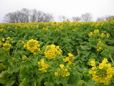 昨日の午前中は、布団も干したくなるようなあったか陽気。それでちょっとドライブでもしたくなり、行ってきました。ダンナは当然仕事なので、今日も母子家庭・・笑。車が北へと向ううちに、あっという間に曇ってきた~~。ポチポチみぞれも落ちてきた~~涙。★びわ湖岸の早咲き菜の花畑★ 新聞の地方ページで紹介されていたので、行って見たいなぁ・・と思ってました。結構見事に開花してますよね♪こんなに寒いのに・・・だって、湖岸だからすごく風が強いし、ちょっと歩き回っただけで、もう手がかじかんでしょうがない。あっというまに真っ赤になるsum1のほっぺたと鼻の頭。でも写真を撮りながら小さい畑の周りをウロウロ。畑の隣に、小さいけどちゃんと駐車場もあった・・花を見に来た人たちでいっぱい。いったい誰が作ってくれているんだろう・・?★はしゃぐsum1★ もっとすてきな写真を見たい方は、こちらへ♪同県人で、すばらしい琵琶湖の風景をたくさん撮っていらっしゃる花さんのページ。腕前はプロ級(!?)その後はここから近い町へでて、おいしいと評判のパン屋さんへ♪ここのパン大好きで~す。本店のほうではよく買うのですが、こっちのお店ははじめて。こちらも花さんに教えてもらいました。菓子パン、惣菜パンがすべて105円均一!驚き価格。あれもこれもとつい買いすぎちゃうんです。なおきのぱん工房 ぶうらんじぇ兵庫、大阪にも出店しているなんて!知らなかった。あなたのお近くにもしあれば、一度行ってみてくださいネ。大したことしてないんだけど、なんとなく充実した休日でした。r1nは車に乗っちゃうと、すぐ寝ちゃうからなぁ・・。でも、菜の花の黄色ずくめにはかなり反応してました。