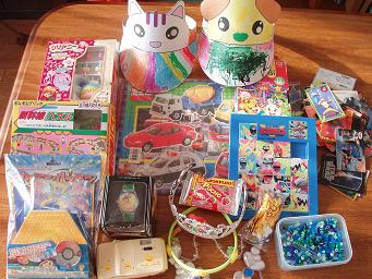 ガチャガチャで取ったアンパンマンの指人形や、しまじろうの使わなくなった付録、