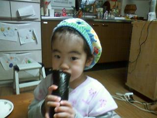 節分のこの日、夕食は恵方巻きもどきの太巻き(笑)だったんだけど、一応雰囲気を味わおうと思いまる子にツナの太巻きをかぶりつかせてみました恵方もどっちかわからないし、しゃべらないで食べるなんて出来るわけない!!ってな感じでその後はいつも通りに食べちゃいました旦那が帰ってくるのを待って豆まき開始“鬼はそと~!!”何故か息子に向かって・・・“福はうち~!!”一応外に向かって・・・“鬼はそと~!!福はうち~!!”思いっきり楽しんだ後は・・・ちゃんと拾わないとね今年買った豆に付いてたお面が小さくて旦那になんてもちろん合わないし、まる子がつけても目の位置が微妙だったな~。来年は確認してから買おうっと豆まきの後はちゃんと歳の数頂くはずだったんだけど、まる子が張り切って庭に投げすぎたので私と旦那は微妙に若い感じで・・・(笑)っていうか、30個以上食べるのってキツイよまる子さんは3個以上食べてたけど、あと息子も5個でいいのにまる子が沢山投げたのでそれ以上食べてたな
