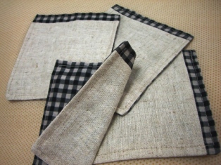 お久しぶりです久々に帰ってきてます。が、出産はまだです・・・お腹ははち切れんばかりに膨らんでおります・・・今回の帰宅が出産前の最後の帰宅になると思われます。実家へミシンを持ち帰りたまに、カタカタとリネンの作品を作っています。まだまだ大作は無理なので、簡単なもので練習しております。出来上がったものを紹介したいと思います「コースター 4枚」「手提げかばん」「コースター 5枚」「巾着袋」上記2点を友人へベビー用品をたくさん頂いたのでお礼の気持ちでプレゼントにしました。ではでは、またしばらくお会いできませんが、これからもよろしくお願いします。ご協力お願いします。↓HOMEへ