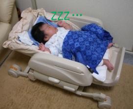 出産前にまりもの友人のKより、A型ベビーカー・チャイルドシート・そして・・・今となっては、魔法のイスその他、ベビー服などを頂きました他の方々からも色々と譲って頂いたり、借りたりして、お陰さまで大きな出費をすることなく今にいたってます。ご協力いただいた方々ありがとうございますm(_ _"m)ペコリそして、その中で我が家でビッグヒット商品になったのがこの魔法のイスです正式名称は知りませんが、このイス左右に揺れるイスで、上下に高さも替えれてリクライニングもできる代物で、ま、ベビー用品ではよく目にするものなんですが、実際にこんなに重宝するとは思いもしませんでしたというのも、はじめは揺らさずにちょっとしたときに寝かせる程度の利用だったので幅が狭いせいで腕が両壁にあたって寝かせてもすぐ泣くのであまり使ってなかったのですが、最近になって揺らしてみたら、泣いてたマリオがス~ット泣き止むではありませんかはじめは偶然?と思ったのですが、違うんです、よっぽどの機嫌が悪いとき意外はこの魔法のイスですんなり寝てくれるんです非常に重いマリオを抱っこする機会がぐっと減りかなり楽になりました。それ以来、旦那とこのイスを魔法のイスと命名しました。二人でしみじみ「Kはホント良いものくれたよな~~」と話しています。今もまりもの隣でスヤスヤ寝てくれてます。ご協力お願いします。↓HOMEへ