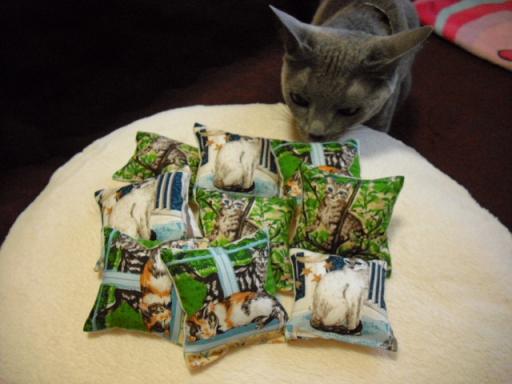 商品にはならないけど生地がもったいないので自宅で使う分とか、お友達にプレゼントにはいいかなと思って!ニャンコによってはすぐに破壊しちゃったりするわけだし~