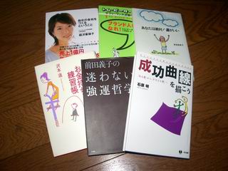 起業塾があと2週間で始まる。猛暑を理由に課題がなかなか進まない。1.日記をWebに書く。 これは実行中。2.「やりたい事、成し遂げたい事を100個」書き出す。 いっぱい書くつもりが52個まで書いてそれ以上思い浮かばない。 私って欲が少ないのかしらん。 今週は本を良く読んでいるのでそれをヒ ントもうちょっと出てくるかも知れない。3.送られて来た教材を読んで感想を書く。 CDは聞いてレポートを書いたが、DVDの方がまだである。 4. ビジネス系の課題図書14冊を読んで、本ごとのレポート提出 アマゾンで購入済。中古本が安く買えるので助かるがまだ半分も 読み終えていない。 毎日の通勤電車の中で読むようにしている。 朝は元気なので読めるが、 帰りの電車は目も頭も疲れて がっくりで読む元気がない。5.オークションで6万円稼ぐ。 今のところ15,500円の売り上げ。 やらなきゃと焦るが、この猛暑でなまけ気味。 少し涼しくなったらまたやろう。何だか夏休み最後に焦る小学生の気分です。