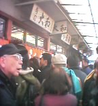 娘のボーイフレンドが新年の挨拶を兼ねて私と娘を築地のお寿司やさんに招待してくれました。仕事を早退して築地の市場の中にある彼の指定のお寿司やさんにうきうきして駆けつけたら、とっても小さいお店で前には凄い行列でびっくり仰天。この寒い中並ぶのかぁと気落ちしたのですが、「始めての築地市場の中のお寿司だ!きっと美味しいに違いない。 しかもごちそうになれる!」と気を取り直して並ぶこと約1時間。 やっとお店の中に案内してもらった頃は手も足も芯まで冷えてがちがちなってしまいました。しかしですね、寒い中待った甲斐がありました。それはそれは美味しくてとろけるような大トロ、ウニや、ぼたん海老などのお任せのセットにお味噌汁でした。 東京でこんなに美味しいお寿司を食べたのは始めてかも知れない。それで一人前¥3,150とリーズナブルなお値段。 皆が長い時間並んでも食べたい理由がわかりました。美味しくて安ければ繁盛しますね。また機会を見てもう一度是非行きたいなと思います。並ばなくても良い日はいつだろうか。