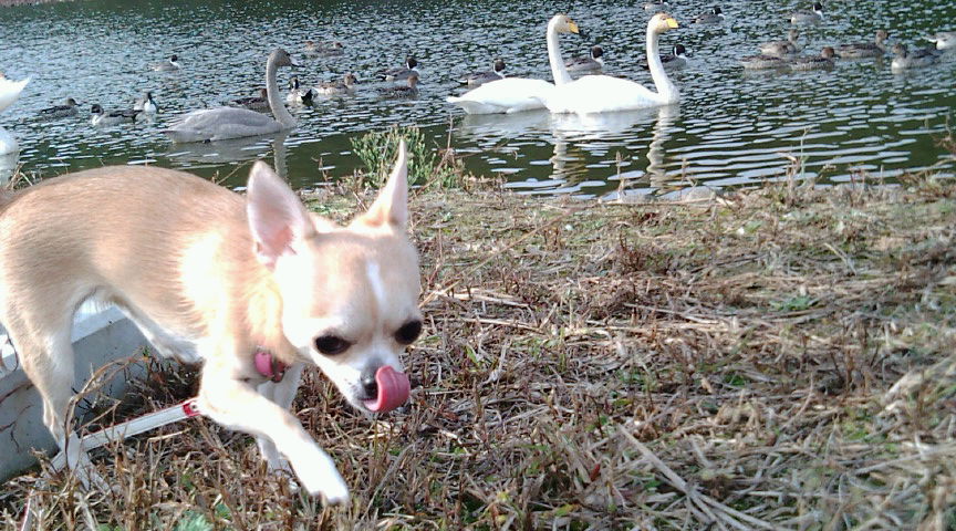 気分転換に近くの沼に行ってきました白鳥さん来てたよ~チョコもご機嫌でした
