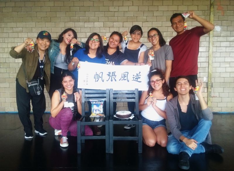 そんなPUMAのホームラウンド、メキシコ自治国立大学UNAMでは夏休みが明け、新入生で活気あふれる始まりの一時ですが、多くの場所では彼等を迎える準備、入学試験などでごったがえしているのですが、そんな中で大学後援の舞台に選抜されたグループのサポートもメキシコに戻ってきて再び始まりました。 そんな再開の初日、グループがケーキを用意して「 おかえりなさい 」、そのケーキには鶴が描かれていて感動。 同じく日本から持ってきた忍者な御菓子「 ふわ丸 」で饗宴。 そして今回の日本での修行、研究の一時を伝えることに徹しました。