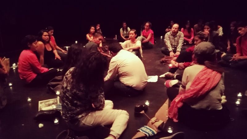 1週間前の集大成な機会、国立自治大学UNAMの舞踊課が主催した90年に至る大学における自治を記念して、昨年トラテロルコ広場で行われた舞踊課制作68年メモリアルプロジェクトの劇場制作に、同じく68年メモリアルプロジェクトで出版された本Cronicas de octubre のメンバーが特別出演。御馴染みの顔ぶれ10名と共に駆けつけました。