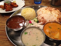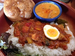お昼過ぎから東京駅近くで勉強会があると言う事で、お昼を東京駅近辺で頂く事と致しました。となりますと場所柄メニューはカレーに決まりですね ( ̄ー ̄)ニヤリッ今日は未訪のグルガオンに行って参りました♪ 11時半過ぎに参りますと席は8割方埋まっていたり致します。注文を済ませてぼんやり外を眺めますと、もう行列が出来ておりましたので、11時半狙いで参りましたのは正解でございました♪折角ですので「三色カレー+骨なしタンドーリチキン+ナンとイエローライス+本日のデザート」のグルガオンスペシャル@1,550円也を奮発致します。ナンは、人様の食べログレビューなんぞを拝見しておりますと「チーズクルチャ」に+@100円で変更が一押しと言う感じでありましたので、迷わず変更致します。っで出て参りました三食カレーなんですが、チーズクルチャがずっしりと思い一品でありまして、ちょいと割ってみますと、中からとろーりとたっぷり入ったチーズが垂れてくる、何とも楽しい代物なんでございます♪っでカレーの方はと申しますと、辛い+中辛+甘口の三種類と言う事でありましたが、どれも(甘口は当然ですが ^^)全然辛くなかったり致しまして、流石はザギンだぜ!とか勝手に思った事でありました。女性を始めとする日常ランチで来られる皆さんは、昼から汗だらだらってな訳にはいきませんわな ( ̄▽ ̄)♪成程の納得の銀座カレーであった事でありました♪っで参りました勉強会… 会計監査なんつう仕事と直接は関係ない内容なんですが、実例を交えて講師の先生が熱心にご講義されるもんですから、結構面白くって、不思議な事に眠くなる事もなく、午後をずっとお勉強して過ごした事でありました ( ̄^ ̄)エッヘン言われた通りの事が出来れば仕事の幅も広がるかも知れません ( ̄▽ ̄)♪