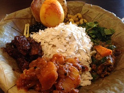 ヨガに行くのは結構好きな方ですが、気が付くと月に一回位、この日曜日のクラスに行く位になっちゃってる親父でございます ( ̄▽ ̄)♪美映ちゃんのお喋りヨガなんですが、今日は親父の苦手の立位でのアーサナをびっしり ( ̄▽ ̄)♪椰子の木のポーズなんかになると覿面出来ない親父、安定感を欠く人生を送っておりまする(^^)。同じ親父世代でもちゃんと片足で立っている親父を見ると不思議で堪りません。でもそんな親父を優しく指導してくれる美映ちゃん先生でありまして(=自意識過剰 ^^)、足を押し付け合ったり、地面に突き刺す感じであったりと、コツを様々な形でご伝授頂けますと、グラグラとみっともない事に変わりはありませんが、少しは立っていられる様になった気がした1時間でありました♪ ヨガ前体重 75.55Kg ヨガ後体重 75.10Kg漸く74Kg台を目指せるポジションにまで至りました♪…と思ったのはその時だけでありまして、その後(日記書いてる今日は2月13日だったりします ^^)75Kg台に一回も入る事の無かった事を考えますと、希望的観測に基づく勘違いであった可能性の高い計測結果でありました ( ̄▽ ̄)♪と言うお昼は大久保まで歩いて参りまして、人様のレビューで気になっていたネパール料理「ナングロガル」にお邪魔致しました♪お邪魔した時点(=1月17日 ^^)では店名も「ナングロ」でありまして、食べログなんかでは「ガングロじゃないよ!」なんて言うコメントが沢山ついていた事でありまして、お料理はネワール族の料理を謳っておりましたが、現時点(=2月13日)では「ネワール族とタカリ族のお料理」を謳う「ナングロガル」と言う店名に変わっておりました。何かこの辺の機敏な身の処し方が気にかかったり致しますが(^^)ご商売の為ならまぁ何でもやって頂戴な ( ̄▽ ̄)♪っで他のネパール料理屋さん(=特にMOMO?)に間違って入っちゃったのではないか?と言う既視感に囚われながらの入店でありまして、内装は同じ設計業者さんである可能性が高いと推致しました。ネワール族のお料理を謳っておられますので、「Newari Samaebouzi Set」をお願い致します。「タパリ」と呼ばれる葉皿に盛り込まれたワンプレートでありまして、その内容は「チウラ(干飯)+スパイシー―ラム+ジャガイモのドライカレー+大豆+スライス生姜+ホウレンソウ+ゆで卵+漬物+バラ+バウーウ」と盛り沢山でございます♪この葉皿、隣のおっさんも感心しきりでありまして、サービスの兄ちゃん捕まえて、日本で売っているのか?とか分けて貰えないか?とか色々聞いておりましたです ( ̄▽ ̄)♪チウラがパリパリ、大豆はポリポリ… と言う事で、保存食を使ってます感が強いネパール料理でありますが、ちょいと塩っ辛い感じを野菜やらバラと言うパンケーキが受け止めてなかなか楽しい一品です♪ビールのつまみにセクワを追加して@2,000円近くのランチとなった今日でありましたが、定食自体はちょいとお高めとは言え、お値段@1,200円也と言う事で内容比リーズナブルと申せましょう♪ネパール料理単独での打ち出しも最近の傾向でありますが、民族色を打ち出した点はちょいと先端を行っている感じが致します♪サービスの兄ちゃんに「出身はネワール族なの?」と微妙な問題もあるかも知れない質問を直球で投げかけますと、「タマン族!」と言うお答でありまして、「でも料理をしている二人はネワリだよ!」と付け加えましたので、メニューに嘘偽りは無いと言う事を言いたかったのかな?とガサツな質問を発した自分を恥じた事でありました♪でもネパールが多民族国家だなんて、浅学菲才の恥ずかしい所で存じませんでした。色々知らない事があるもので、老人性の脳みそを活性化するのに、この手の食べ歩きは結構良い作用を有している様に思われます ( ̄▽ ̄)♪っと楽しく過ごしている内に、渋谷での映画「Audience」の開演時間に間に合わなくなってしまいましたので、歌舞伎町のホテル街をプラプラ歩いて新宿の角川に「黄金のアデーレ」を観に参りますと生憎と満席と言う事でございます ( ̄▽ ̄)♪仕方なく、そのまま帰宅致しましたが、そんなに人気があるなら公開を延長するとか、上映館を増やすとかしろよなぁ~とぶつぶつ思った親父でありました v(ー_ー)チッ