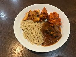 ジム始めでございます♪ちょいと早めにジムに入りまして、昨年4月以来の筋トレをやってみる事と致しました ( ̄ー ̄)ニヤリ Dummbelle Press ×3sets Shoulder Press ×2sets Hip Adduction ×2sets Latpull ×1set以前より軽い重量でやりましたが、回数をなかなかこなせなくて、筋力の衰えを如実に感じた事でありました。と言うおかびぃエアロですが、何時もは足腰にがつんと効くエアロなんですが、今日はお尻の筋トレをした事もありまして、ペンジュラムで尻が筋肉痛でありましたとさ ( ̄▽ ̄)ま、自社比50%の出来と言う事で、良いエアロ始めとなりました♪ エアロ前体重 86.20Kg エアロ後体重 85.70Kg今年はダイエットを強化する予定でありまして、ロッカールームでおかびぃに「今年の目標は?」と聞かれましたので「80Kgを切る!」とお答えしますと「甘い! 78Kg」と高い目標を押し付けられてしまいました ( ̄▽ ̄)とまれ、この85.70Kgがスタート地点でございます。カレー食べ歩き始めは、際コーポレーションが参宮橋に「インド、スリランカの料理手法をベース」にした店を出したとの人様のブログを拝見して行って参りました。ま、この情報だけなら行かなかっただろうなと言う感じ(=チェーン店)なんです。ですが店長に、エリックサウス、タップロポーンでの勤務を重ねられ、Vishnu君のお料理教室でもご一緒した事がある鳥海友美さんが就いておられるとなれば話は別でございます。折角なのでスペシャルカリー=エビビスク+パリップ+スリランカポーク角煮カリーをお願いしますと、まぁ多彩な味わいの玉手箱 ( ̄▽ ̄)エビが洋風、角煮が中華風と言った変化球を織り交ぜながら、サンボルや、作るのが大変と苦笑されていたイディアッパがスリランカ風情を掻き立てて、大変素晴らしいターリーに仕上がってました♪ご飯もバスマティライスと日本米の二本立てでお腹も一杯です ( ̄▽ ̄)今年第一弾の食べ歩きは先ずは幸先よく大満足の新規開拓大成功と相成りました家に戻りますと、三時のおやつに「白玉あんみつ作っておいたよぉ~♪」と言う妻からのお言葉でございます。白玉が好きなもんですから、年末にユーチューブで白玉の作り方なんぞを検索して、存外簡単そうだったので、自分で作ってみようと、白玉粉&餡子&あんみつの缶詰を買い込んでいたものを使われてしまった訳でございます。ちょっと粉遊びをしたかったので残念な事でありましたが、矢張り美味しいスイーツの出来上がりでありまして、安くて満足度も高い、良いセットだなと自画自賛 ( ̄ー ̄)ニヤリ夜は、駅前のスーパーで「芥子菜」が売っておりましたので、パキスタンの冬の名物「サルソン・カ・サーグ」を自炊いたしました ( ̄ー ̄)ニヤリ初めて作る今回、ペースト状にはせず、微塵切りのパターンに致しました(=って見掛けたレシピがそうだったからそうなっただけですが ^^)。冷凍ナンにバッチリの仕上がりで親父的には大満足でした♪芥子菜の半分を昨日の残りのチェティナード・チキン・コランブのグレービーに、鶏腿一枚と共に投入して再活用して、サグ・チキンとして別の風味を楽しみました。北と南のお料理を勝手に融合しちゃった格好ですが、インド料理ってその辺融通無碍ですから、インドの神様には許して貰う事と致しましょう♪