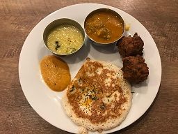 南インド最大のお祭りとも言われるポンガルの季節となりまして、ナンディニ虎ノ門店では季節のブュッフの店開きでございます♪ダイエットに甚だしく逆行する食事なんですが、もう心が折れてしまいました ( ̄▽ ̄)一巡目、Palak Bondaをとり、サンバル、ウタパムと進んで、やっぱりKara Pongal(=一寸甘いお粥)を取らなくっちゃね!とカトリにとりますと、「今日はこれとSweet Pongalが目玉ですから外さないでね」とのラナマさんのアドバイスがございます勿論、ガッテンしておきました ( ̄ー ̄)ニヤリこの一寸軽めに盛った一皿がどれも最高です。量的にもこう言う食事を毎日したいと思う絶品の一皿でございます。もしかしたら、今日のナンディニさんのお料理は何時に増して美味しいかも知れません!!二巡目にとったChicken Uppu Curryがこれまた滅茶美味なんです。塩分強めで、辛さも汗かくレベルで大満足でございます。血圧の薬飲まされて、ダイエットもしなくたやいけないのに良いのかよ?という所でございますが、三巡目でも取ってしまいました ( ̄▽ ̄)経堂のお店のウプカリも美味しいと言う評判なので、食べ比べてみなくてはいけなくなりました ( ̄ー ̄)ニヤリ ヨガ前体重 86.65Kg ヨガ後体重 86/05Kgと言う夜はミカリン先生のアシュタンガヨガに出撃です♪立位のプラサリタバドッターナーサナ(立位の開脚前屈)では、頭が床につく人が大多数の名人揃いのスタジオ光景でありまして、すげぇなぁ~と他人事の様に感心している親父でございますが、ミカリン先生から「出来ると思ったら、足の幅を狭くするとかして難易度を上げる!」と厳しいご指導が入った(=親父にではありませぬ ^^)事でございます。「ヨガの修行にゴールは無い!」との事でありまして、皆あんなに格好良く出来ているのに、厳しいもんだなとも思った、超絶初心者のヘタレヨギーでありました母の葬儀やら何やらで、ヨガのレッスンもおサボり気味の今日この頃でしたら、出来ていたマリッチアーサナは手が繋げなくなるわ、ブリッジも一寸上がるだけになってしまうわ、シルシアーサナは首が怖くて練習も出来ないわと言うヘタレ振りでありまして、やはり日頃の練習が重要だよな!と改めて思った事でありました。しかし、昼間の食べ過ぎは如実に体重に現れまして、これはかなりヤバイ事となっておりまする ( ̄▽ ̄)