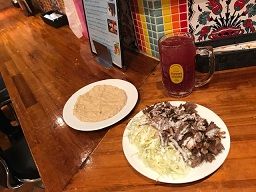 芝大門での野暮用を済ませますと丁度お昼時でございます♪近くにボリューミーなポークステーキを出すビストロのランチ営業があるんですが、食べログのブックマークをつらつら見ておりますと、もう一軒、同様のポークステーキを売りにしているビストロを発見 ( ̄ー ̄)ニヤリこれは糖質制限的でもあるな!と言う事で親父はヘコヘコお邪魔して参りました。お店は近隣のお若くもお綺麗なOLさん達で満席です♪何しろランチは@1,000円で、ポークステーキや、拝見するとなかなか美味しそうで且つボリューミーなパスタが頂けますから、人気を呼ぶのもむべなるかなでございます。最初にサラダが供されますが、之がなかなか美しい盛付で感心致しました。紅芯大根+人参+大根を薄切りにして、千切ったレタスの上に乗せただけなんですが、色とりどりの薄切り野菜って所がポイントでして、薄くひらべったちお皿に広げられたレタスもボリューミーに且つ美しく見えると言う事で、自炊親父は早速真似する事と致しました ( ̄ー ̄)ニヤリお目当てのポークステーキは、300gと言うボリュームを十分感じさせるエアーズロック状のボリューミーな一品です。お味の方も、肉質は十分上等でありまして、脂身を美味しく頂く機会すらない感じでございます。これに綺麗に火が入り、ソースも(なんのソースだったか忘れちゃいましたが ^^)ぴったりの感じでありまして、美味しく完食させて頂きました。糖質制限的に、ご飯抜きと致しましたが、付け合わせのマッシュドポテトは実にポークステーキののソースに合うもんですから、ぺろぺろ完食(^^)。近くにあれば週一で通っても良いと思わせる内容でありました。ご馳走様でした♪と言う夜は、昨日失神した時に頭を盛大に床に打ちつけたと言う事でしたので、ヨガでひーひー言って血圧が上がって何かあってはいけない(^^)と思いまして、ミカリン先生のヨガは無念の思いを抱きしめながらおサボりと致しました。直帰すると妻に連絡すると、食べ物が余りないから何か買って来い!との指令が発せられましたので、駅前のケバブ屋で「肉だけケバブ(大盛)」と八百屋で寿屋の豆腐を買って帰宅。何時買ったのかも忘れてしまったほど古い紹興酒をお燗して晩酌と致しました。なかなか美味しゅうございました♪