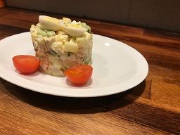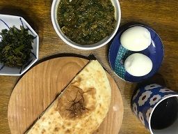 夕食は先月満席で入れなかったウズベキスタン料理「ヴァタニム」に再チャレンジでございます ( ̄ー ̄)ニヤリお店に参りますと満席ではありますが、幸いにもお会計中の先客がおられまして、滑り込みセーフで入店出来ました♪10席ほどのカウンターのみの店内は、真ん中位にポジショニングした我々夫婦、左側にウズベキスタン人と思しき青年達、右側に日本人夫人お二人連れと言う構成でありまして、ウズベキスタン青年達が楽しそうにお喋りしている姿が和める素敵な国際的な光景です♪ 先ずはロシア風ポテトサラダである「オリヴィエサラダ」とウズベキスタンのパン「ノン」(=インドのナンに限りなく発音が近いですね ^^)、ノンに付けて食べると美味しいと言う生クリームみたいなペースト「スメタナ」をお願い致します。ロシア風と書きましたが、ポテトサラダはロシアのオリヴィエさんがレストランで最初に出したのがオリジナルですから、「風」ってのは一寸正確性を欠きますね! イラリアンではロシアンサラダと言われたりするポテトサラダでございます ( ̄ー ̄)ニヤリっで生クリームみたいなスメタナが美味しいんです♪なんでも生クリームと牛乳を混ぜてあるとの事でありましたが、妻がカウンター向こうの店員さんに「之って生クリーム?」とお聞きしますと、左側のウズベキスタン青年達が一斉に顔を上げて「俺が教えてやるよ!」って感じがアリアリだったのは、国民性なんでしょうか、楽しくも嬉しい光景でありました。本日のメインはピラフの語源とよく言われる「プロフ」でございます♪親父はウズベキスタン人が講師となったプロフ教室に参加した事もあったりするんですが、人参を物凄く沢山使うのが特徴でありまして、人参の甘味が肉と油と調和して素敵なハーモニーを奏でるお料理なんでございます。妻も気に入ったみたいでありまして、ウズベキスタンに旅行しても大丈夫みたいですね ( ̄ー ̄)ニヤリ〆は...と言うか最後になって出て来たのが、羊の串焼きである「シシャリク」でありまして、挽肉ですとケバブって事で、矢張り中央アジアの往来は濃密なんだなぁと、言葉、文化、料理のつながりが深いものであると改めて感心致しました。流石に食べ過ぎまして、ノンはテイクアウトをお願いして包んで貰いましたが、ならば目の前のサムサ(=インドならサモサですね ^^)も持ち帰れば良いじゃないか!と思いつきまして、2個ばっかし追加発注でございます。何しろ妻の隣のウズベク青年が、皮が比較的薄い大きなサムスを割って、先ずは中身だけほじくり出して美味しそうに食べている姿が羨ましかった食う意地の張った親父でございます。お店の方によりますと、彼らは大体ケバブ屋さんか大工さんと言う事でありまして、女性は余り日本に来ないので「寂しいよね」との事でありました。ケバブ屋さんと言うとトルコ人と言うイメージですが、彼らもトルコ系ですから没問題と言う事でありましょうか?そう言えば前回、親父が一人でお試しに来た時に隣に座ったウズベキスタン紳士は、「国境は関係無い、中央アジア諸国の人は皆トルコ系」と言う様な事を言っておりました。歴史的、宗教的概念でありましょうか。楽しい食事でありました♪(またまた長くなったので続く)