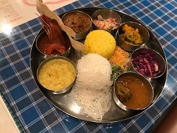日曜恒例の美映ちゃんヨガに行って参りました♪美映ちゃん曰く、「レッスン時間が1時間と言うのは本当に短くって、本当は1時間半は欲しい」との事でありました。確かに、もう少し色々やった方が良い様な気も致しますが、爺さん、体力が持たないかも知れません ( ̄▽ ̄) ヨガ前体重 85.45Kg ヨガ後体重 85.25Kg体重は高位安定です ( ̄▽ ̄)っで参りましたのは「亀有」です。お花茶屋なる駅にある、スリランカ料理のお店が新年会をやると言う告知をSNSでキャッチした親父は、お花茶屋なんてなかなか行けないけど、「学び交流館」なら「バングラデシュの家庭料理を食べる会」で何時も行ってら!とばかりに申し込みをしたものでございます。ところがこの学び交流館、何時もの新小岩でもなければ亀戸でも無くって、こち亀の亀有だったと言う大きな誤解があったのは笑い話でございます。お陰様で生まれて初めて亀有の地を踏みましたちょっと遅れて調理室に入りますと、受付は店主の二人のお子が担当されてまして、日錫混血(旦那は日本人の結構な爺さん+お若いスリランカ人の奥さん ^^)の長女ちゃんも長男君も快活なおしゃべりさんでありまして、良い家庭で育っているんだなと微笑ましく思いながらン受付手続き=会費支払いでありました♪食事はビュッフェ形式でありまして、チキン+ハルマッソー+パリップ+ポルサンボル+ビーツのポリヤル等々がその内容です♪ハルマッソーが格別に美味しかったのは特筆すべき事でありまして、ちょっと発酵した感じを受けたのは、舌馬鹿親父の感想ですから当てになりませんが、実にいい塩梅の塩加減(=かなり強い ^^)でご飯が進む君でありました。ママさんは「味見しないで作っちゃったから味が心配」とか言ってましたが、どれもきちんと美味しいのは流石に本場の味と言う感じでありましたが、あまりにも日本人の口に合うもんですから、ちょっと辛さとか塩加減を日本人に寄せているのではないかという疑念が浮かんだのは秘密でございますスリランカ専門の出版社「アールイー}さんが来られていて、スリランカ事情についての軽いレクチャーがあったり致します。社長さんは、スリランカ留学以来一貫してスリランカのお仕事をされていると言う事でありまして、なかなかご見識が深くって、ちょっと質問なんかしますと、たちどころに明確な回答が得られましたのは、嬉しい驚きでありました。ちなみにスリランカの言語であるシンハリ語は、矢張りヒンドゥー語等との共通点が多いとの事でありました♪女性陣にはサリーの着付け体験があったりと楽しい企画が一杯の新年会でございます。とは言え、かなり常連メンバー同士の新年会と言う感じが強い会合だったのは、親父の迂闊さを恥じ入るばかりでありますが、お陰様で楽しく&美味しく過ごす事が出来ました♪お土産も大量に持ち帰る事が出来まして(^^)会津塗の皿に盛り込みますと、昼間の紙皿とは全く違った景色が浮かび上がって、やはり食事は器も大事であると再認識したことでございます♪