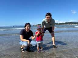 材木座の海岸に出たお孫ちゃん一家の写真が送られて参りました♪