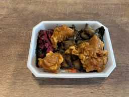 今日は「茄子から 海苔めんたい まし」でありまして、茄子の炒め物+鶏唐揚げ(ましで2個増量)+ご飯の上に乗りが敷き詰められ+明太子が塗られたバージョンです♪
