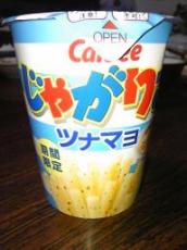 期間限定のじゃがりこツナマヨ味ゲット。封を開けたとたんマヨネーズのにおいが・・・。シーチキンの味とけっこう濃い目。おいしいです。お湯をいれてポテトサラダにしたら立派な1品になるかと。