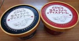 花畑牧場「生キャラメルアイスクリーム プレミアム」コンビニで売られていたので買ってみました。ガリガリくんが売られているアイスコーナーではなくハーゲンダッツが売られている扉を開けるコーナーにありました。ハーゲンダッツよりも高い380円だから驚き。まっ花畑牧場ですからね~。生キャラメルと生キャラメルチョコレートを1個ずつ買って会社の後輩と食べました。私は生キャラメルバニラの中にあの生キャラメルが入っていて、アイスが溶けたときに生キャラメルの味がとてもでていておいしかったです。(他のアイスよりやわらかいのか?とけやすい感がありました) 後輩には生キャラメルチョコレートを。想像していたのはもっと黒茶のようなカカオのような色だったのですが、開けてみたら・・・あずきアイスのような色でした。生キャラメルチョコレートもキャラメルのような感じがあまりしないのでこういうものなのかも。 チョコのほうも悪くはないのですが、生キャラメルだとやはりプレーンのほうがいいですね。昨日やっていた「お願いランキング」が花畑牧場のメニューだったのですが、売り上げランキングでは 1位 生キャラメル 2位 生キャラメル チョコレート 3位 生キャラメル 宮崎マンゴー 4位 生キャラメルプリン 5位 生キャラメルクリーム 5位 生キャラメルピッツア 7位 生キャラメルチーズケーキ 8位 生キャラメルロールケーキ 新 生メロンパン 生キャラメル 新 生キャラメルアイスクリーム プレミアムなのですが、美食家達の格付け「美味ランキング」はつぎのとおり。 1位 生キャラメルアイス 1位 生キャラメルチョコレート 3位 生キャラメルクリーム 4位 生キャラメルピッツア 5位 生メロンパン 生キャラメル 5位 生キャラメル 7位 生キャラメルロールケーキ 8位 生キャラメルプリン 9位 生キャラメル 宮崎マンゴー10位 生キャラメル チーズケーキ新発売のアイスが1位とはすごいですね。田中義剛がハーゲンダッツを超えたいといろいろ試作して発売まで1年かかったんだとか。12月15日発売だったそうです。(当初は8月予定)メロンパンは知らなかったな。