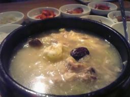 仕事で新大久保に行ったのでどこかでランチを・・・と思ってぷらぷら歩いていると「「裸の少年」「王様のブランチ」で美味しい韓国料理のお店」みたいな看板があるので、そのお店に入ってみることに。サムギョプサルがうりのようなので、「おっ昼から焼肉だ~!」と思いメニューを見ると・・・。ランチメニューにないっ。サムギョプサルのお肉等通常メニューにはあるんだけど、注文は二人前からのようで。ランチメニューはコムタンとかビビンバとか。サムゲタンが気になったけど、20食限定なのでだめかな~と思いだめもとで注文したらOKとのこと。おかず8品ついています。じゃがいもの千切りやしめじのにんにく和えがおいしかったです。もちろん主役のサムゲタンもおいしかったです。体がぽかぽか。あたたかい日なのにさらにあったかくなってしまった。 韓国食材のスーパーやグッズを売っているところも、食事をするところも大体女性グループでわいわい楽しそうなんですよね。仕事だからしょうがないけど、私も友達とわいわい楽しく食べたいな。くやしいから近いうちにここのサムギョプサルは食べてやる!