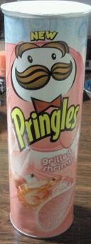 バリのお土産【その1】Pringles grilled shrimpポテトチップ=プリングルスがピンクなんですよ~! えびの味もするし味付けもちゃんとされているのに、いつも食べているプリングルスより軽くてなんか味が薄い気がするのは私だけ!?後味が残らないっていうか。なんか不思議な感じ。いつも食べているプリングルスのふたの紙には「プリングルス」と書かれていたかと思いますが、いただいたプリングルスのふたの紙は真っ白でした・・・。ちょっと入れ物も細身かな。日本のものだと140グラムらしいのだけど、これは110グラム。プリングルスの字体もちょっと違うかな。ふたを開けてポテトチップスの写真を撮ったのですが、裸眼でみるとピンク~ピンク~なのに、撮るとあまりピンクさがでていないように思えます。デジカメと携帯でもこんなに色の違いが・・・。 日本では食べることのできないフレーバーなので貴重でした~。