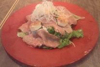 『天香』 九龍球というスイーツ。寒天の中にフルーツを入れて丸くしたものです。フルーツはパイナップル、キーウィ、スイカだったかな。ライチはそのままの形で入っていました。 お店のメニューにはこのような文が・・・~寒天は「繊維のかたまり」といえるほど食物繊維が豊富です。約100倍の水を吸収し、大きくなり腹持ちがいいのでダイエットの時はたっぷり摂るほど効果的。WHO(世界保健機関)では「ノーリミテッド」つまり制限なしに食べられる食品に分類されています~香港で人気があるんだとか。〇形でかわいらしい。女子が好きそうです。 お茶した後、韓国SHOPで辛ラーメンブラック等を買い、夕飯を食べることに。 刀削麺で有名な『麺王翔記』へ。西安料理だそうです。一人ずつ刀削麺は選べるのでコース料理を注文。・前菜お昼のくらげとまた違った味・食感。 ・西安焼き餃子 ・西安春巻き ・なすの山椒揚げなすのフリッターに山椒パウダーがかかっていてビールにあいそうな一品。 ・鶏肉と野菜の炒め物 ・刀削麺友達は海鮮 私はやわらか牛バラ見た目はくどそうなんだけど、見た目よりもくどくなくあっさりスープです。 ・デザートまたまた杏仁豆腐。こちらは固め。 話をしているとあっというまに時間が過ぎてしまいますね。実は・・・今日食べたり買ったお店は、先日テレビ「レディス4」で紹介されていたところなんです。(紹介されていた~と書いてあるお店がほとんど)刀削麺は無理だと思っていましたが、テレビで紹介されていたお店は全部制覇できちゃいました~。本当は友達とはお昼を食べてちょっと買い物をして解散と思っていたのだけど、夕飯を食べ終わったら外はまっくら1日中華街にいたかんじです。妊婦さんを暑い中つれまわして・・・と母から怒られましたが、ほとんどお店で話をしていたし、夕飯も食べると言ったのは友達のほうだし、毎日もっと歩いているから平気と言われたから大丈夫だと思いながら、気を使って行動したつもりだけど、早めにおうちに帰すべきだったのかな・・・。中華街でおいしいものを食べることができて友達は喜んでくれたみたいなんだけどね。友達のベビー誕生が楽しみですっ。