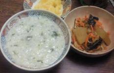 1月7日は七草粥(ななくさがゆ)ですね。人日の節句=1月7日の朝に食べられている日本の行事食(その一年の無病息災を願って食べられる)ですが、我が家では親と一緒に食べれるのが夜だけだったので、夜にいただくことに。どうしても七草(セリ、ナズナ、ゴ(オ)ギョウ、ハコベラ、ホトケノザ、スズナ、スズシロ)が毎年ちゃんと口からでてきません。記憶力がだんだん衰えている!?英語では「seven-herb rice porridge」というらしいですね。我が家は、七草のフリーズドライになった七草粥セットのお世話になってしまいました。雑穀も入って、七草も入っていて20分くらい煮ればできちゃうので簡単。 気候や降雪の関係で七草が摘めない東北地方では、七草を使わない粥を炊くらしいですね。山形県の村山市周辺ではゴボウ、ニンジン、こんにゃく、ずいき、油揚げなどを入れた納豆汁、七草汁を1月7日の朝食として食べるようですし、最上川流域では1月7日に新米の握り飯を12個作り、箕の上に乗せて柳の箸を刺して「おみ玉」として飾り、その後で握り飯を崩して煮込み、野菜、昆布、干し柿、栗を入れたものを「七草粥」と呼ぶらしいです。お雑煮もそうですが、地域によって違いがあるので話を聞いてみるのもおもしろいかもしれませんね~。