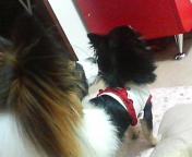 今日は動くマロゆずです(^▽^)ゆずが着ている服の帽子をおもちゃと勘違いしている様子のマロ(^^;)「ビデオなんか撮ってないで、マロに注意してよ」 (ゆず)マロはエスカレートするとゆずの耳まで噛んじゃうので、しばらくゆずにこの服は着せていませんこの動画は去年の12月に撮ったものなのですが、ゆずの毛がまだ少なくて、スムースチワワちゃんみたい