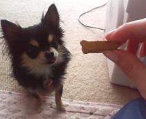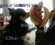 昨日今日と、多くの方々からゆずへの応援コメントを頂きました。本当にありがとうございます~(^▽^)ゆずの足は昨日と変わらず、つま先だけ地面につけて歩いていますが、日に日に元気になってきています病気が発覚してからの2日間、ゲージの中で寝てばかりだったのですが昨日の夜から「出して出して」と甘えた声を出すようになりましたよ~ 今日のゆず 今朝、寝ているゆずをダッコしながらパンを食べていると いきなりゆずが凄い勢いで起き上がり、私からパンを奪い取りました(++;) ゆずの口の中に指を突っ込んでパンを取り出そうとしたのですが、 パンと一緒に指をかじられてしまい物凄く痛かったので断念・・・ 目が寝起きっぽい(^m^) 何!!どうした!? ノドに詰まったのかな?? (のんびり眺めているダンナと私) うわっ!!汚いっ どうやら口の上の部分にパンがはり付いてしまったようです 苦しんでいたので、口からパンを取り出してあげました(おかげで私のひとさし指が傷だらけ) よっぽど苦しかったのか、左目から涙が・・・ 人間の食べものを奪い取って食べるからでしょ・・(--;) ゆずは普段あまり人間の食べものに興味を示さないのですが、 このパンはおいしそうに見えたのかな?? これからはワンコの近くで食べないようにしなきゃ(*^^*) *見苦しい画像ばかりでゴメンなさい 素材提供→Hideout工房