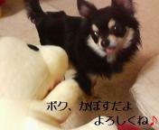 チワワのハンドパペットを買いました名前はかぼすちゃん (私が勝手に名づけました)さっそくかぼすちゃんを使ってマロゆずと遊んでみましょう まずはあいさつから ゆず、かぼすちゃんにあいさつしなさい あれっ・・・・ かぼすちゃんのコトをにらみつけています 「おいらにはこのおもちゃがあるから、お前は認めない」(ゆず) かぼすちゃんの必死のアピールもむなしく、ゆずは寝ちゃいました ゆずにはかぼすちゃんがお気に召さなかったようです マロはと言うと・・・ 喜んで遊んでいますよ~~ マロは大のおもちゃ好きですから 「私はワンコにいじめられる為に生まれてきたので いつでも喜んで噛まれますよ~」(かぼす) ゆずにとことん無視されるかぼすちゃんなのでした かぼすちゃんの名前が気に入らないのかしら??