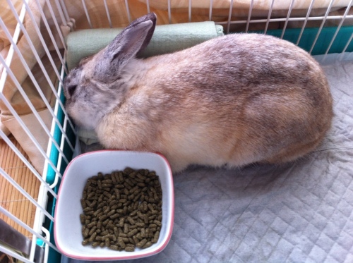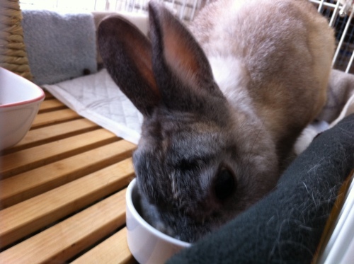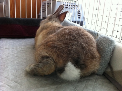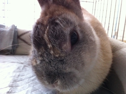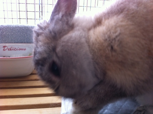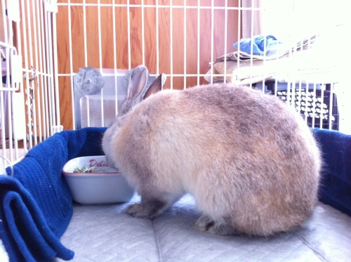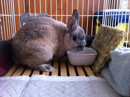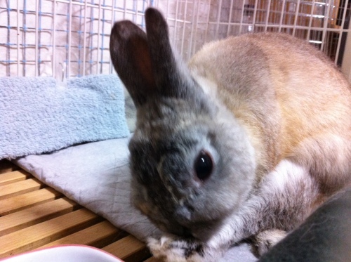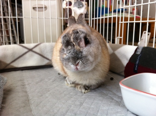 みなさーん、お元気ですかぁオイラ、なんとかやってますよぉちょっと斜に構えたところがありますが、気取ってるワケじゃないんでねゴハンも食べてるしー、チモシーも食べてるしー、お水も、お薬だって、ちゃんと飲んでまーすかーちんにグルーミングしてもらったら、一皮むけたイイオトコになりましたぁふにっ