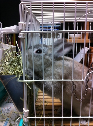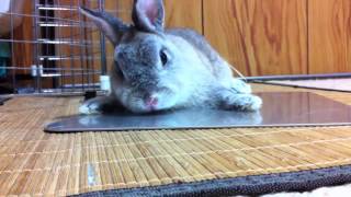 なんだか、かーちんが段差が苦手なオイラの為に新型トイレ作ったって置いてったけど要するに、ただの金網なワケねオイラ、焼きウサギあーでも、ちびっと冷たくって、きもちいいかもー