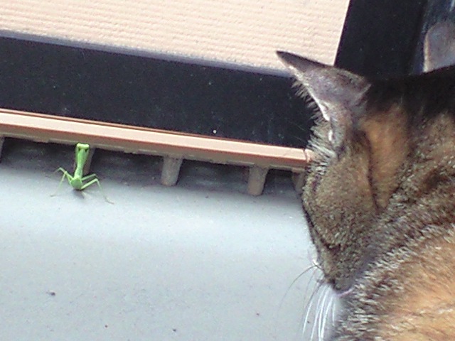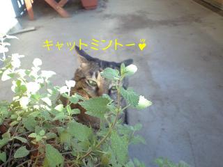 昨日は一日中雨でしたが、今朝はきれいに晴れ♪ まるもベランダに出たがり、やっと栄えてきたキャットミントを嗅ぐ!! しかし葉っぱを採ってやると、『プイッ』として他の所行く