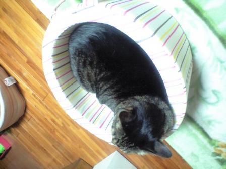 先日福岡へ遊びに行った時、クマのぷーさんのペット用ベッドが目に入り、肌触りがものすごくよかったので、衝動買い!まるも気に入ったようで、夜もそこから離れません