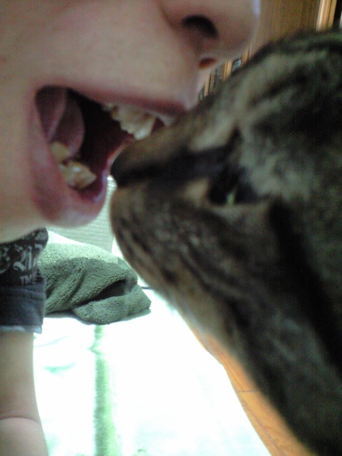 必ず、歯磨き中と歯磨き後はお口のチェックに来ます(笑)たぶん歯磨き粉のミントの臭いにつられているんだろうけど、時々歯磨き粉を舐めようとします。。。ミントってマタタビ系なのか??
