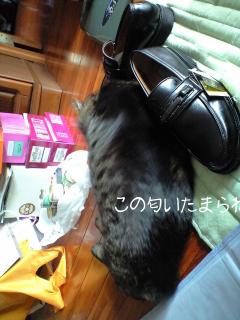 とうとう革靴がだめになったので、新しく購入したら、自分が履く前に、まるがラリっていました!!マタタビをあげた時のように。。。俺の靴は、マタタビの匂いなのか???もう毛だらけです(トホホ)
