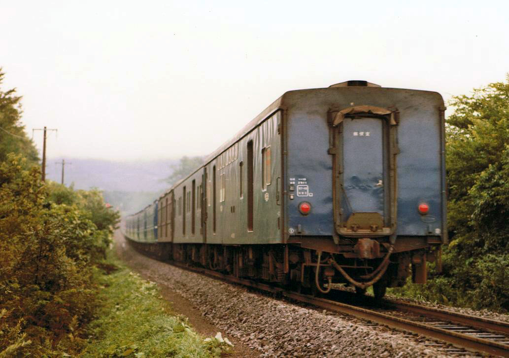 こちらは、いわゆる「山線」区間で撮影した写真です。峠の勾配が険しいため、DD51になってからも重連仕業となっていました。当時、重連のDD51が定期で牽く客車急行列車としては唯一だったと思われます。さすが、重連は迫力がありますね。