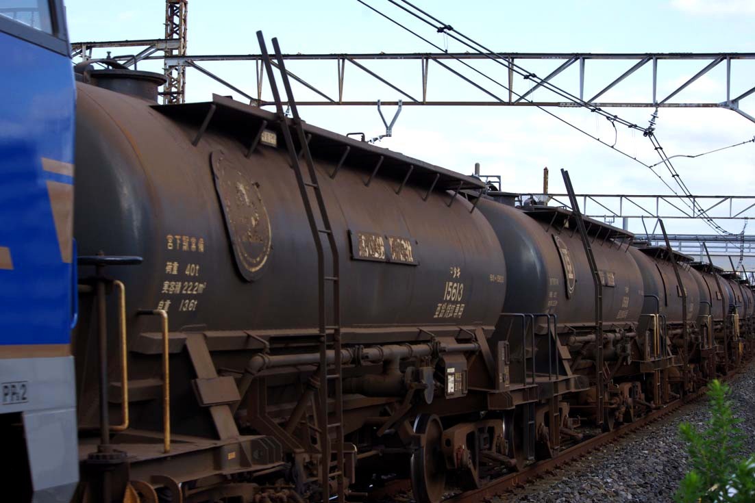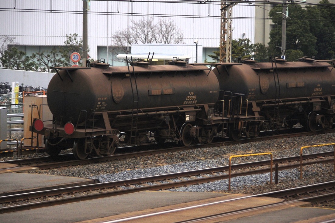 同貨物列車は小型のタンク車と無蓋車の混結(日によってはどちらかのみの日も有り)で運用されており、平成23年から運用され始めた後継の タキ1200になっていましたが、かつては タキ15600が使用されていました。