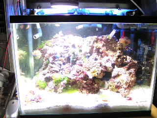 ★今日帰ってきたら、メタハラの位置を昨日ずらしたままだったらしく、水槽の半分しか光が当たってませんでした、そのうちやるとは思ってたけど(^_^;)まぁ後は変わった様子もなく、昨日書きました謎の生物を10匹くらい退治しました、(まだまだいますが、手が届かないんです)★これからの予定は、水流の改善とデトリタスが舞っているので、物理フィルターを追加しようかなぁと思ってます、シースワールが欲しいけど高い高すぎる!!基本的にライブロックが多すぎて水槽が窮屈な感じで水流がうまくいきませんね
