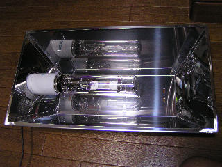 ★最近、仕事が忙しくて、家に帰っても、何もする気が起きません。(〃´o`)=3 これからも、忙しい日が続くでしょうが、とりあえず、メタハラの結線も行い準備はできました。明日、点灯した写真UPしますんで、しばらくお待ちくださいm(_ _;)m内側です (寸法 45×25×14、この6500kの球は短いです)外側です (吊り下げ用の長穴あり、右横に放熱の為のスリットあり)★最近、困った事があります、以前入れたシリキルリスズメ(1匹)が、水槽のボスになってしまったことです、チビのくせに、他の魚を威嚇しまくりです(`□´)コラッ!どうやって出そうか検討中です(;^。^A アセアセ・・