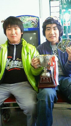 今日も毎週恒例のファミリーランド浦和店にムシキング旧(真)ロム大会に行って来ました11時スタートの大会はワンマッチ160以下(小学生以下)と200以下(年齢制限なし)の2大会同時開催です年齢制限なしの大会はマサルナ&ルナは初戦敗退ママは初戦勝つものの2回戦敗退マーは頑張って準決勝まで行きましたがやはり鬼門の準決勝で敗退でも調子は悪くないようで・・・小学生以下の大会のルナは又しても初戦敗退調子の悪くないマーは又しても鬼門の準決勝へん~やはり勝てず・・・復活までは遠いかなぁ。。。さぁ昼食を食べて気を取り直して午後の大会へ勝ち抜き2匹320まで(小学生以下)&ペア戦(年齢制限なし)小学生以下ペアは無制限、中学生1人以上のペアは320までの大会です先ずはメインのペア戦ルナ&アリサちゃん、マサルナ&シンさん、マー&Masaya、ママ&Aママさんで参加しました14組でスタートマー&Masayaペアの1回戦は大人パパさんペアとでしたが何と先発Masayaが爆発まさに核弾頭復活ような打ち回しで1匹抜きで勝利ママペアは残念ながら初戦敗退マサルナ&シンさんペアは初戦でルナ&アリサちゃんペアと対戦でしたが何故かマサルナが頑張ってしまいマサルナペアの勝利マーペアの2回戦はこれまた大人パパペアとで、復活した核弾頭は凄い先発のパパさんをグリーンで倒し2匹目でちょっと守りに入ってしまいましたがマーがしっかり〆て勝利マサルナペアの2回戦は子供ペアとでしたが120ムシでシンさんが頑張ってくれましたが先発を倒せずマサルナに交代しかしマサルナはおバカな打ち手で見事敗退シンさんごめんねさぁマーペアはマーの鬼門の準決勝相手は強豪のお子さんペアとしかし鬼門は復活した核弾頭Masayaには関係なし何と!何と!またしても核弾頭Masayaの1匹抜きで勝利決勝進出です反対ブロックから上がって来たのはMMFのユウスケ君ペア気持ちで負けるなって言って向かわせましたが・・・復活した核弾頭Masayaの勢いは止まらず何と決勝戦も1匹抜きで。。。 チームMMR優勝 このペアでの優勝を何度夢見た事かMasayaとペアで初優勝最高ですMasayaありがとう で、同時進行で進んでいた小学生以下の勝ち抜きは16名参加で・・・ルナは初戦敗退マーは1回戦MMFのIジョウ君に勝って2回戦は強豪の女の子に勝って鬼門の準決勝はチームメイトのMasayaに勝って2大会連続決勝進出もうペアで優勝しているから負けてもいいから気楽に行けよって送り出しました逆ブロックから上がって来たのは午前中のワンマッチで優勝しているK.ナルキ君復活したのはMasayaだけじゃないって感じの打ち回しで何とマーも1匹抜きで マー優勝 いやぁ2勝も出来るとはマー出来すぎです次はマサルナ&シンさんペアで優勝目指します(爆)大会終了後はシンさんと対戦して遊んで地下で買い物して帰りました家に帰ってからは勝っても負けても晩酌ですでも今日のお酒は美味しいMasayaとマーのペア優勝は4年越しの夢だったので最高ですさぁ明日からまた1週間が始まりますが気分良く週明けのくだらない早朝会議も乗り切って頑張れそうです 最後に良かったらクリック宜しくお願いしますね