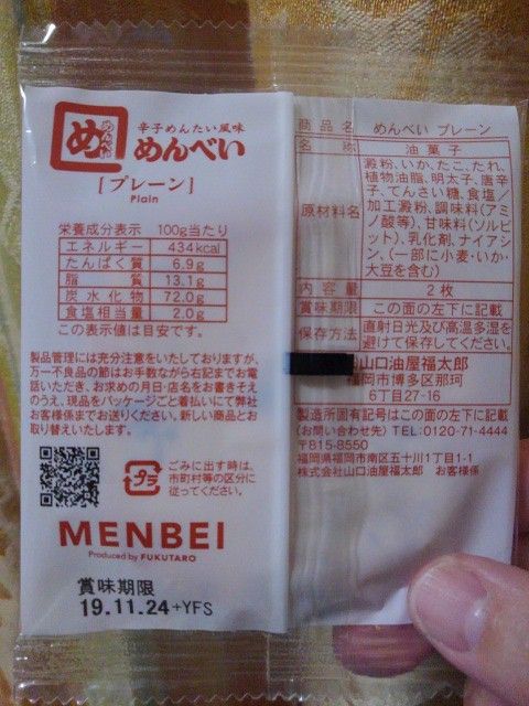 福太郎の代名詞ともなった、明太子のおせんべい「 めんべい 」。博多土産の新定番として福岡を始め各地で販売されています。パリパリっと何枚でも食べられる食感と、程よい辛味と魚介の旨味が特徴です。