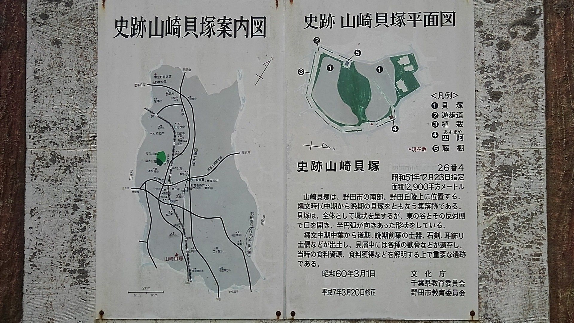 貝塚の形態は南関東地方に良く見られる馬蹄形貝塚の典型例です。現在は史跡公園になっていて、周辺の住宅地はこの貝塚の名前を使い「山崎貝塚町」という地名になっています。