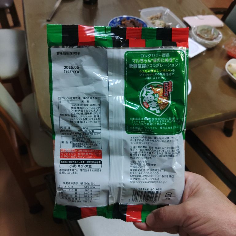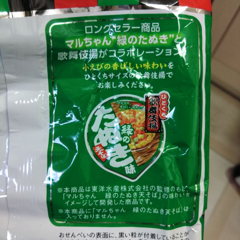 ※ 緑のたぬき味 天そばとひとくち歌舞伎揚