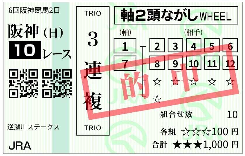 通番 中京 10R 阪神 10R 中山 11R 中京 11R 阪神 11R 購入金額 払戻単価 払戻/返還金額