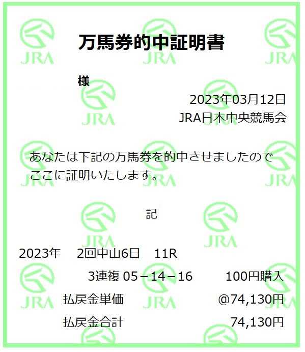 13 | 05 | 02 | 18 | 06 | 100円 | - | 0円 |