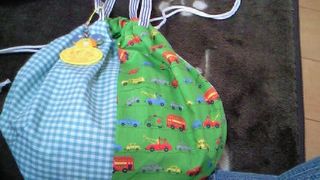 あしたはいよいよかっくんのお泊り保育です。パジャマ入れです。しじみ巾着のLサイズです。ベビー布団を持っていくのですが、うちのはマットレスタイプなので2つ折なんです。なので大きめです。明日終業式が終わったあと一度帰ってくるので、お布団は帰りのバスに預けて運んでもらいます。でもお泊り保育が終わった後は自分で持って帰るため、持ち手の部分に補強をしておきました。写真の面はミッキーのワッペンをつけました。反対の面は消しゴムはんこで名前を彫ったものをつけました。一応かっくんはみどり組なので、布団BAGは黄緑のチェックです。ちなみにジャスコのパンドラハウスで180円/mです。枕も必要なのですが、かっくんが普段使っているのはニトリのなのですが、薄いけど大きさは大人用。。。これを持たせるわけにはいかないので作りました。中身はバスタオルです。ミキハウスの夏柄の生地があったので中のバスタオルを三つ折していれて小さめ枕の完成です。どうせ寝るときだけ必要で、寝ちゃえば頭は乗っかってないと思うし。かっくんは楽しみにしているようですが、実際幼稚園行ったらどうなるかな??たっぷり思いで作ってくれると良いな♪