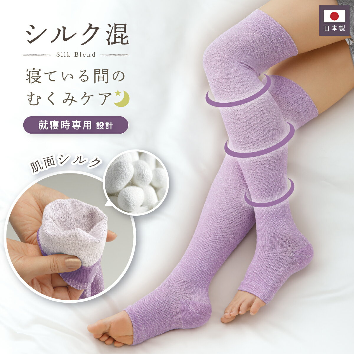 やさしい段階着圧で就寝時のむくみケア しめつけすぎない リブ編みの心地よい刺激 な…